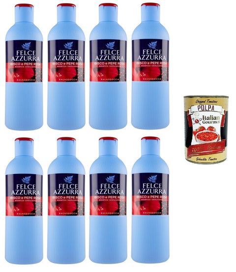 Felce Azzurra Bagnodoccia Ibisco e Pepe Rosa Body Wash, Shower Gel Hibiscus and Pink Pepper Distinctive Fragrance, 8 x 650 ml + Italian Gourmet Polpa 400 g