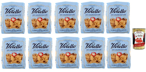 Voiello Pasta Mezze Maniche Rigate Pasta 100% Italian N 122 500g + Italian Gourmet Polpa 400g Pack of 10