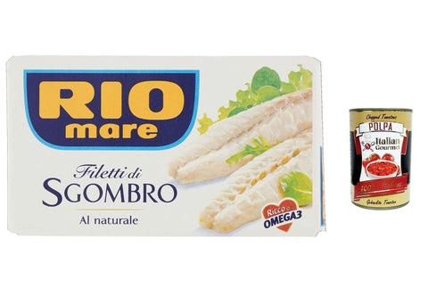 12 x Rio Mare Mackerel Fillets in Olive Oil, Rich in Omega 3, 125 g + Italian Gourmet Polpa 400 g