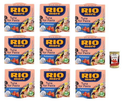 12 x Rio Mare Condimento per Pasta Puttanesca con Tonno, Tuna in Olive Oil with Black Olives and Capers 160 g + Italian Gourmet Polpa 400 g