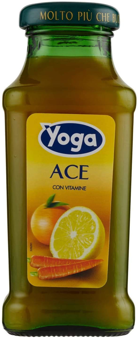 24 x Yoga Bar Ace Orange and Carrot Juice Fruit Juice Drink Fruit Flavour Vitamins A, C and E Glass Bottle 200 ml Fruit Juice