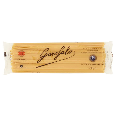 Bucatini resemble large spaghetti but have a central hole typical of short noodles, and have a structure with great personality. These bronze drawn long noodles from Gragnano PGI combine the flavor and color of wheat with bold and simple sauces such as Cacio e Pepe, Carbonara and the traditional Amatriciana. Ingredients durum wheat flourFree Italian gourmet Polpa di pomodoro!
