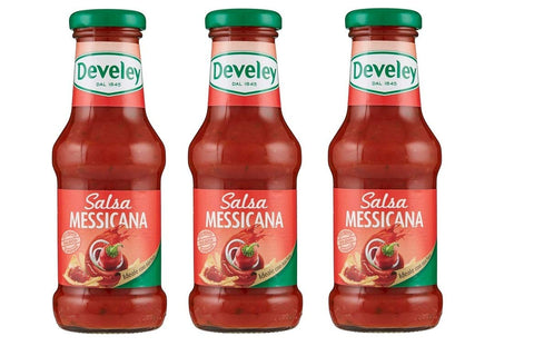 3 x Develey Salsa Messicana Gluten Free Mexican Sauce Spice Sauce Table Sauce Ideal for Nachos Glass Bottle 250 ml