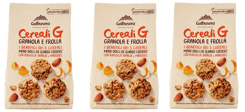 3 x Galbusera Cereali G Granola e Frolla Shortbread Biscuits with Cereal and Fruit with Apricot, Orange and Almonds Cookies Biscuits 300 g