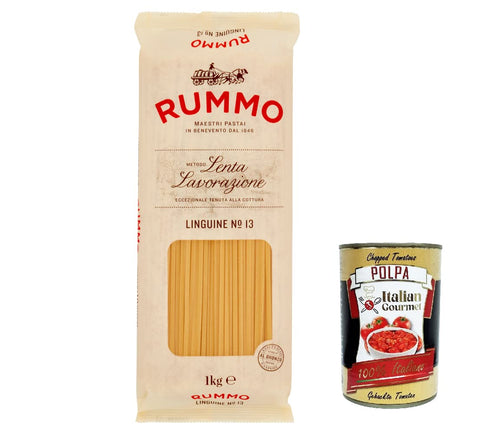 4 x Rummo Linguine N. 13 Durum Wheat Semolina Pasta Italian Noodles 500g Pack + Italian Gourmet Polpa di Pomodoro 400g Tin