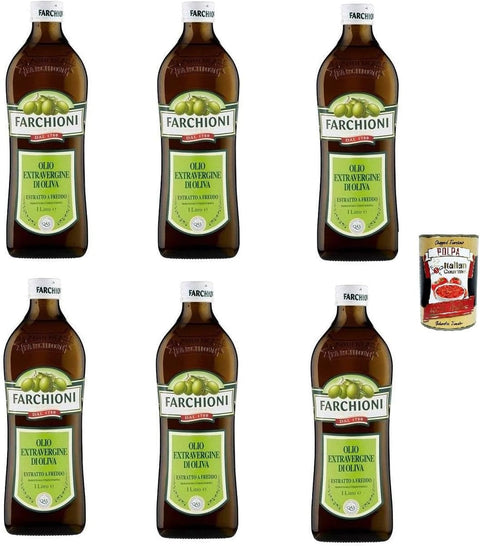 6 x Farchioni Classico Extra Native Olive Oil 1 Litre Olive Oil Olive Green + Italian Gourmet Polpa