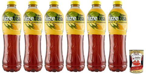 6 x FUZE TEA Lime Iced Tea, Lemon Black Tea with a Lemongrass Note, Soft Drink, Alcohol-Free, Disposable PET Bottle 1.25 Lt + Italian Gourmet Polpa di Pomodoro 400 g Tin