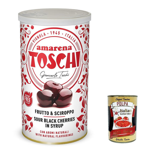 6 x Toschi Amarena, Premium Quality from Italy, Authentic Italian Cherry Topping, 400 g + Italian Gourmet Polpa 400 g