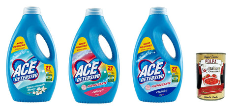 Ace Detersivo Igienizzante Test Pack, 3 x 1350 ml, 81 Wash, Detergent, Liquid Detergent, Washing Machine + Italian Gourmet Polpa 400 g