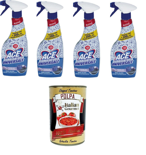 Ace Sgrassatore Universale Fiori di Lavanda- Zero Aloni, Senza Candeggina Universal Degreaser Lavender Flowers - No Strips, No Bleach 4 x 600 ml + Italian Gourmet Polpa 400 g