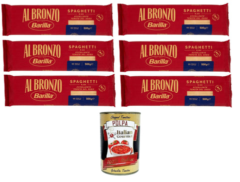 Al Bronzo Pasta Spaghetti Bronze Drawn Pasta, Raw Processing Method, 6 x 500 g + Italian Gourmet Polpa 400 g