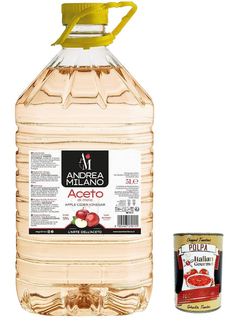 Andrea Milano, Apple Cider Vinegar, Sensitive and Aromatic Flavour, Ideal for Combining with Cooked and Raw Vegetables, 5% Acid, Made in Italy, 5 L Pet + Italian Gourmet Polpa 400 g