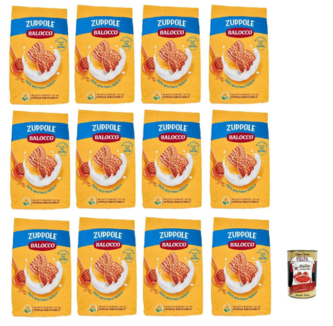 Balocco Zuppole Biscuits for Breakfast, Biscuits with 100% Italian Milk, 12 x 350 g Biscuits Cookies Cake + Italian Gourmet Polpa 400 g