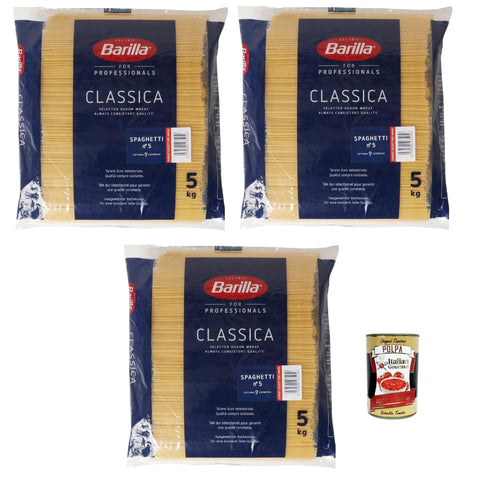 Barilla Durum Wheat Pasta Spaghetti n. 5 – Pack of 3 (3 x 5 kg) + Itallian Gourmet Polpa 400 g