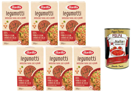 Barilla Legumotti Lentils Chickpeas Peas 6 x 300 g - 100% Legume Granules, High in Protein, High Fibre, Gluten-Free, Quick Side Dish & Salad Base + Italian Gourmet Polpa