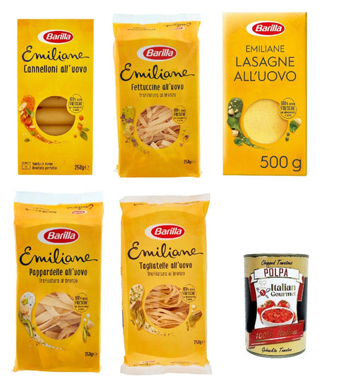 Barilla Pasta all' Uovo Le Emiliane, Egg Pasta, Pasta with Egg 4 x 250 g, 1 x 500 g + Italian Gourmet Polpa 400 g