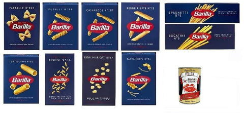 Barilla Pasta Mix 10 x 500 g (Farfalle, Fusilli, Casarecce, Penne Rigate, Spaghetti N.5, Bucatini N.9, Tortiglioni, Risoni, Ditalini, Pasta Mista) - Storage Pack + Italian Gourmet Polpa