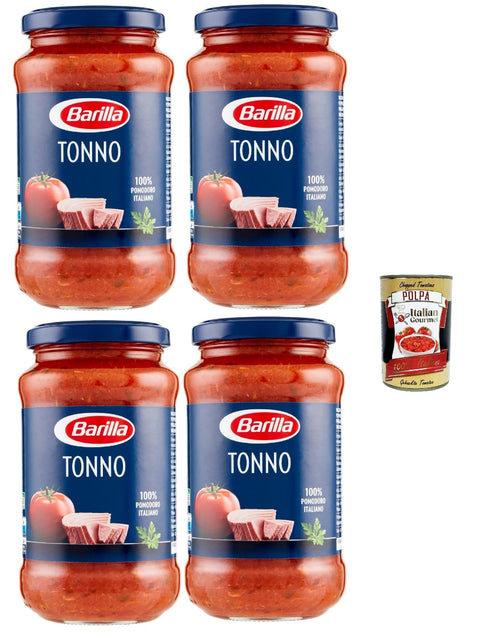Barilla Tonno Tomato Sauce with Tuna and Olive Oil, 4 x 400 g + Italian Gourmet Polpa 400 g