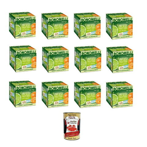 Bonomelli Infusi Fruttosi, Lime e Mandarino, Lime and Mandarin Infusion, Pack of 12 Filters, 100% Natural Ingredients, 12 Packs + Italian Gourmet Polpa 400 g