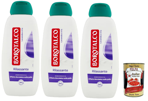 Borotalco - Bath Foam for Body, Lavender and Iris Fragrance - Refreshing Bath Foam, Borotalk Effect on the Skin - Ideal for Men and Women - Pack of 3 x 450 ml + Italian Gourmet Polpa 400 g