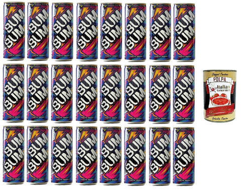 Bum Bum Energy Drink - Party Hard! Energy Drink with Taurine, Caffeine and Vitamins - 24 x 250 ml Tin + Italian Gourmet Polpa 400g