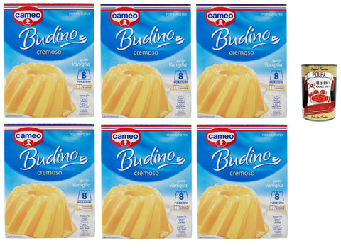 Cameo Creamy Pudding Mix with Vanilla Flavour, Easy to Prepare Dessert, The Pack Contains 2 Bags of 4 Servings Each for a Total of 8 Servings, 6 x 130 g + Italian Gourmet Polpa 400 g