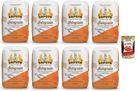 Caputo Farina Integrale - Whole Grain Flour - Whole Grain Soft Wheat Flour Ideal for Neapolitan Pizza - 8 x 1 kg + Italian Gourmet Polpa 400 g