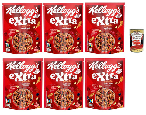 Cereali Extra "Frutti Rossi" | Try Chocolate and Red Fruits | Breakfast Cereals, Muesli with Crispy Oats | 6 x 375 g + Italian Gourmet Polpa 400 g