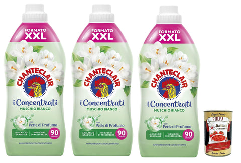 Chante Clair, I Concentrati Ammorbidente Sublime Muschio Bianco White Musk Fabric Softener 1800 ml Long-Lasting Fragrance 70 Washes Detergent 3 x 1800 + Italian Gourmet Polpa 400 g