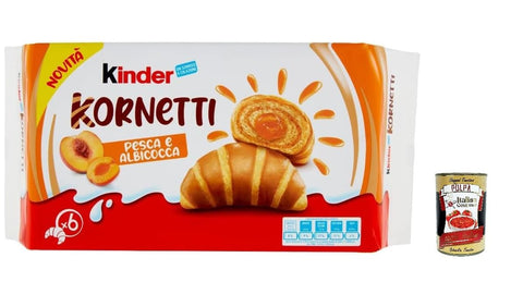 Discover the delicious children's cornetti with peach and apricot filling - a seductive pastry experience for children. Each pack contains 6 individually wrapped croissants with a total weight of 252 g. These airy and light cones combine the crispness of a traditional croissant with a fruity peach-apricot filling that runs perfectly through the golden brown baked pastry. The practical portion size makes it the ideal companion for on the go, for breakfast or as a sweet afternoon break. The individually packed croissants always stay fresh and are always ready to enjoy. With their perfect balance of crispy pastries and creamy fruity filling, these cornetti offer an unforgettable taste experience that reflects the popular quality of the Kinder brand.ITALIAN SPECIALITY: Children's Kornetti are delicious croissants with a fruity peach-apricot filling, perfect for breakfast or as a snack