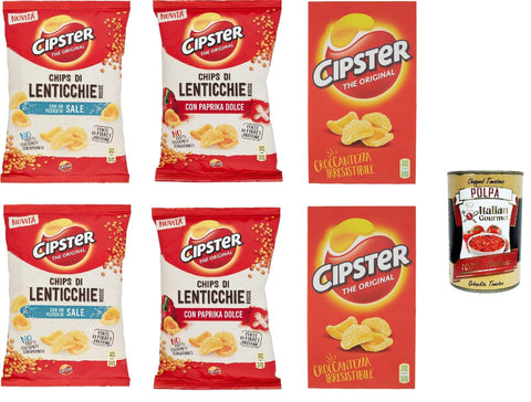 Cipster Original Test Pack, Cipster di Lenticchie Rosse al Sale, Pepper, Iconic Shape and Crispy Flavour, 6 x 80 g + Italian Gourmet Polpa 400 g