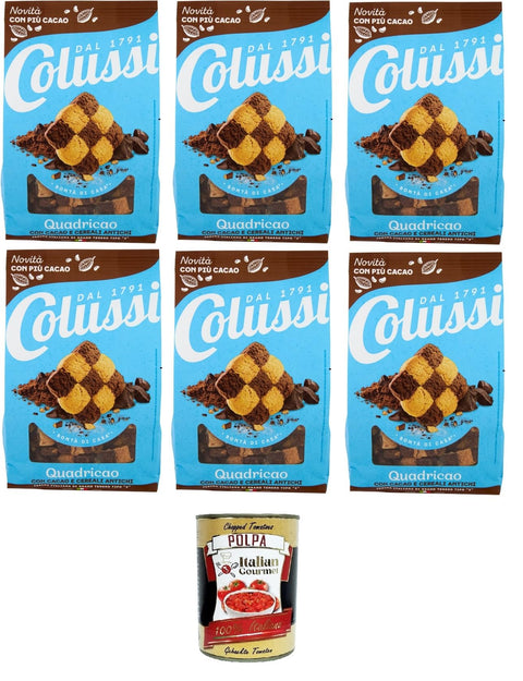 Colussi Quadricao Biscotti con Cacao e Cereali Antichi Biscuits with Cocoa and Old Cereals 6 x 450 g + Italian Gourmet Polpa 400 g