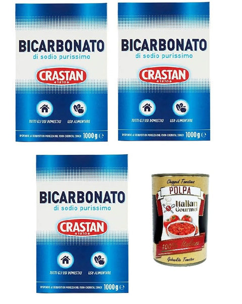 Crastan Bicarbonato di sodio purissimo pure sodium bicarbonate for home use and food, 3 x 1000 g + Italian Gourmet polpa 400 g