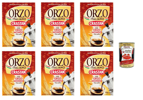 Crastan Orzo Mocha, Roasted and Ground Barley for Mocha, Barley Grain Coffee 6 x 500 g + Italian Gourmet Polpa 400 g