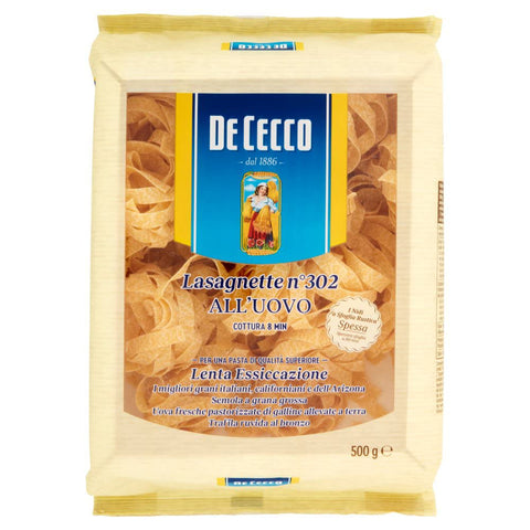 De Cecco All'uovo Pasta Lasagnette with Egg No. 302 500g + Italian Gourmet Polpa 500g Pack of 5