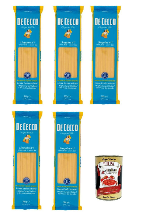 De Cecco Linguine n. 7 100% Italian Pasta Noodles 5 x 500 g + Italian Gourmet Polpa 400 g