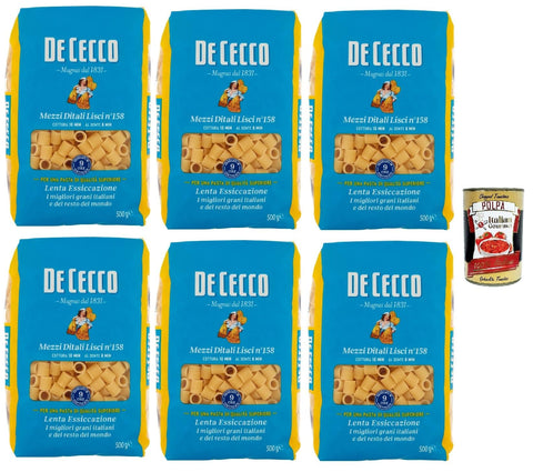 De Cecco Mezzi Ditali Lisci n°158, Pasta 6 x 500 g, Slow Dry, High Quality Durum Wheat Semolina, Cooking 10 min (al dente 8), Ideal for Soups & Minestrone + Italian Gourmet Polpa 400 g