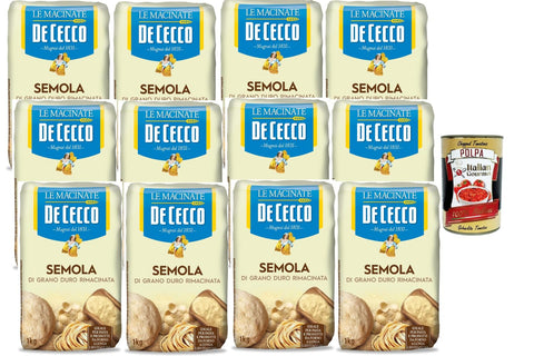 De Cecco Semola di Grano Duro Rimacinata 12 x 1 kg - Durum Wheat Semolina for Pasta, Bread & Pizza, Long Dough Guide, Italian Premium Quality + Italian Gourmet Polpa