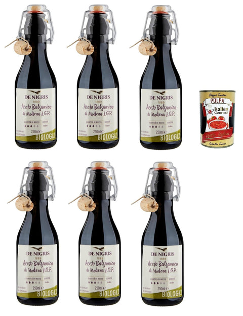 De Nigris Aceto Balsamic Di Modena I.G.P. Balsamic Vinegar from Modena 6 x 250 ml + Italian Gourmet Polpa 400 g