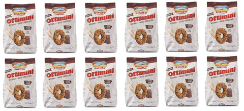 Divella Ottimini Integrali con gocce di cioccolato Whole Grain Biscuits with Chocolate Chips and Wheat Germ Italian Biscuits 350g Pack of 12