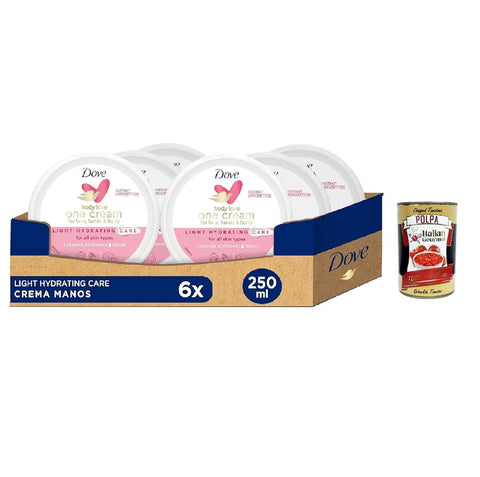 Dove Body Love One Cream for Face, Hands & Body Light Hidrating Care 250 ml, Light Moisturising Cream for Body, Hands and Face 6 x 250 ml + Italian Gourmet Polpa 400 g