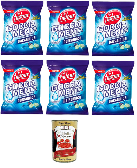 Dufour Goccia Menta Caramella Ripiena Balsamica Menthol Balsamic Sweets 6 x 150 g + Italian Gourmet Polpa 400 g