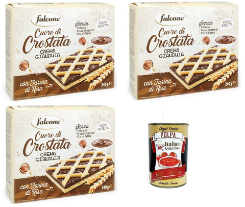 Falcone Cuor di Crostatina con Farcitura alla Crema di Gianduia, Cake with Gianduia Cream, 3 x 240 g + Italian Gourmet Polpa 400 g