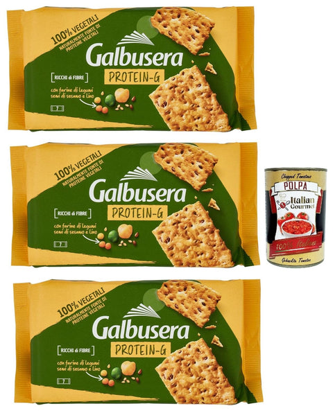 Galbusera Protein G, Cracker Con Farine Di Legumi, Semi Di Sesamo E Lino, Cracker with Legumes Flour, Sesame and Flax Seeds 3 x 280 g + Italian Gourmet Polpa 400 g
