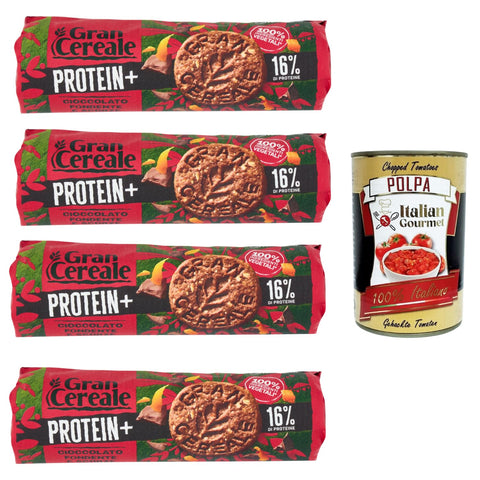GranCereale Protein + Biscuits 4 x 230 g - 16% Protein, 100% Vegetable, Crispy with Dark Chocolate - No Palm Oil, Recyclable Packaging + Italian Gourmet Polpa