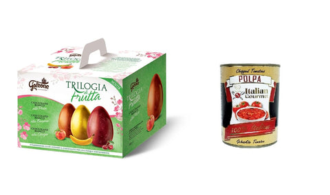Fruit Trilogy, Three Pure White Chocolate Eggs in Peach, Banana and Cherry Flavours 540g (180g x 3) Three Great News, Three Delicious Fruits, Three Surprising Colours, Exclusive Packaging... And there's a surprise too! Three pure white chocolate eggs in peach, banana and cherry flavours 540g (180g x 3)Free Italian gourmet polpa di pomodoro - 400 g