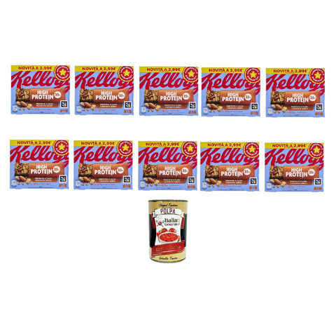 Kellogg's High Protein Mandorle e Caramello Salato 140 g Bar with Salted Caramel and Dried Fruits 10 x 140 g + Italian Gourmet Polpa 400 g