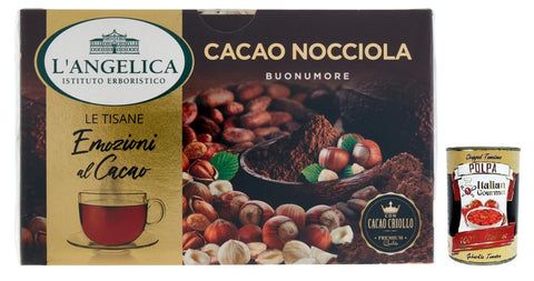 L' Angelica Tisana Cacao e Nocciola, Herbal Tea with Cocoa and Hazelnut, Pack of 15 Filters + Italian Gourmet Polpa di Pomodoro 400 g Tin