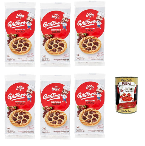 Lago Gastone Crostatina al Cacao, Cocoa Tart 6 x 240 g Pack, Each Pack Contains 6 Snacks of 40 g + Italian Gourmet Polpa 400 g