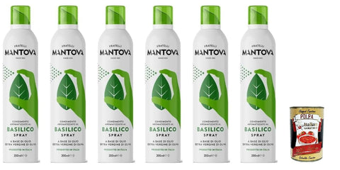 Mantova Basilico Spray, Extra Virgines Olive Oil with Basil, 6 x 200 ml Pack, Made in Italy, + Italian Gourmet Polpa 40g0